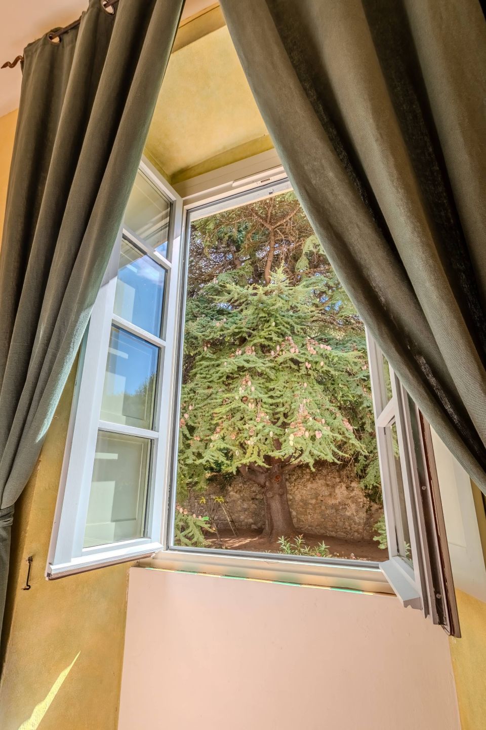Located on the 2nd or 3rd floor of our elegant historical residence, the double room offers a cosy atmosphere with a stunning view of the majestic centennial cedar of Lebanon.