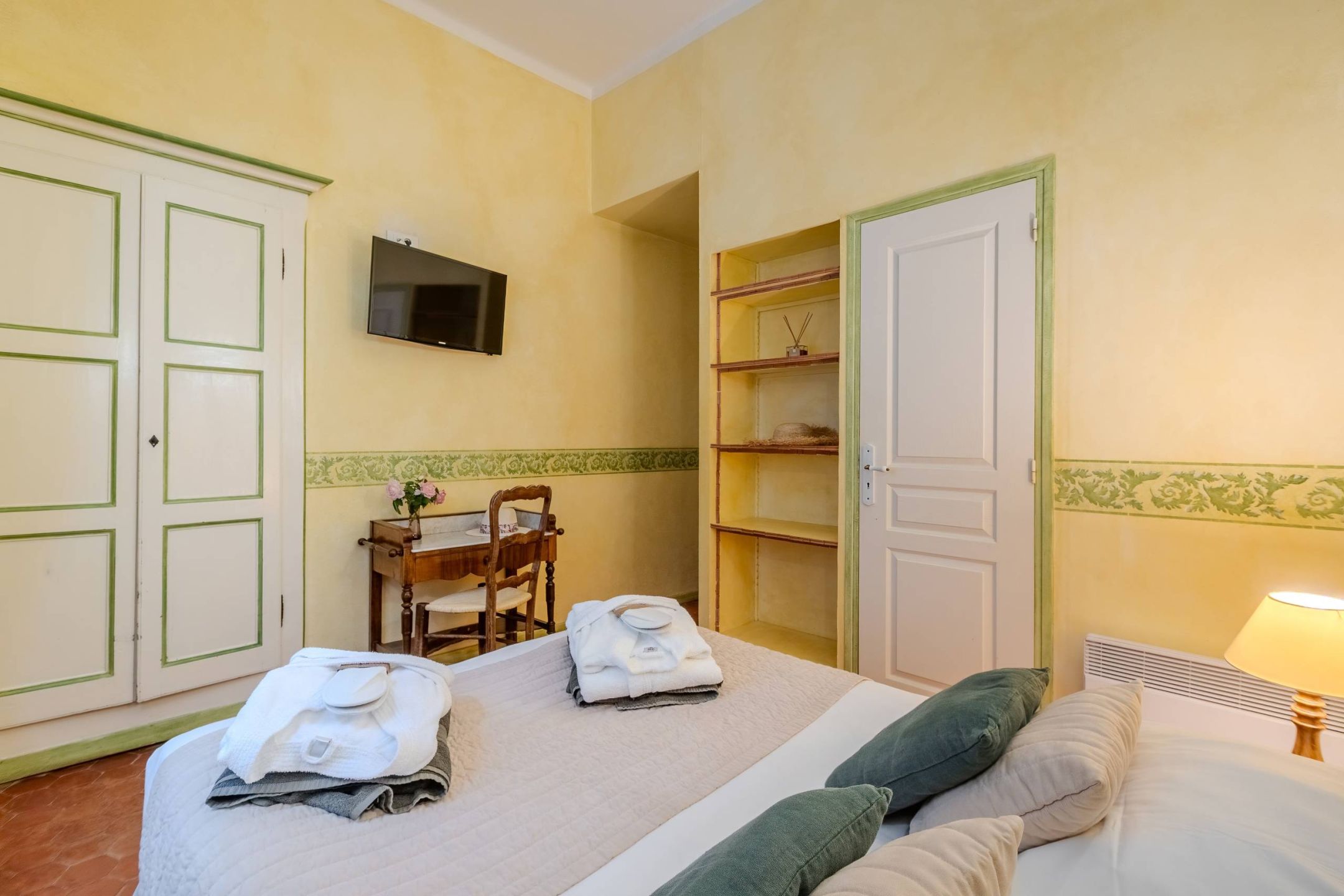 From your windows, enjoy a relaxing view of the garden and the majestic Lebanon cedar, a silent witness to the history of the house. Every morning, you can start your day with a buffet breakfast served between 8 am and 10 am, featuring local products and homemade treats, or choose room service for a gentle awakening.