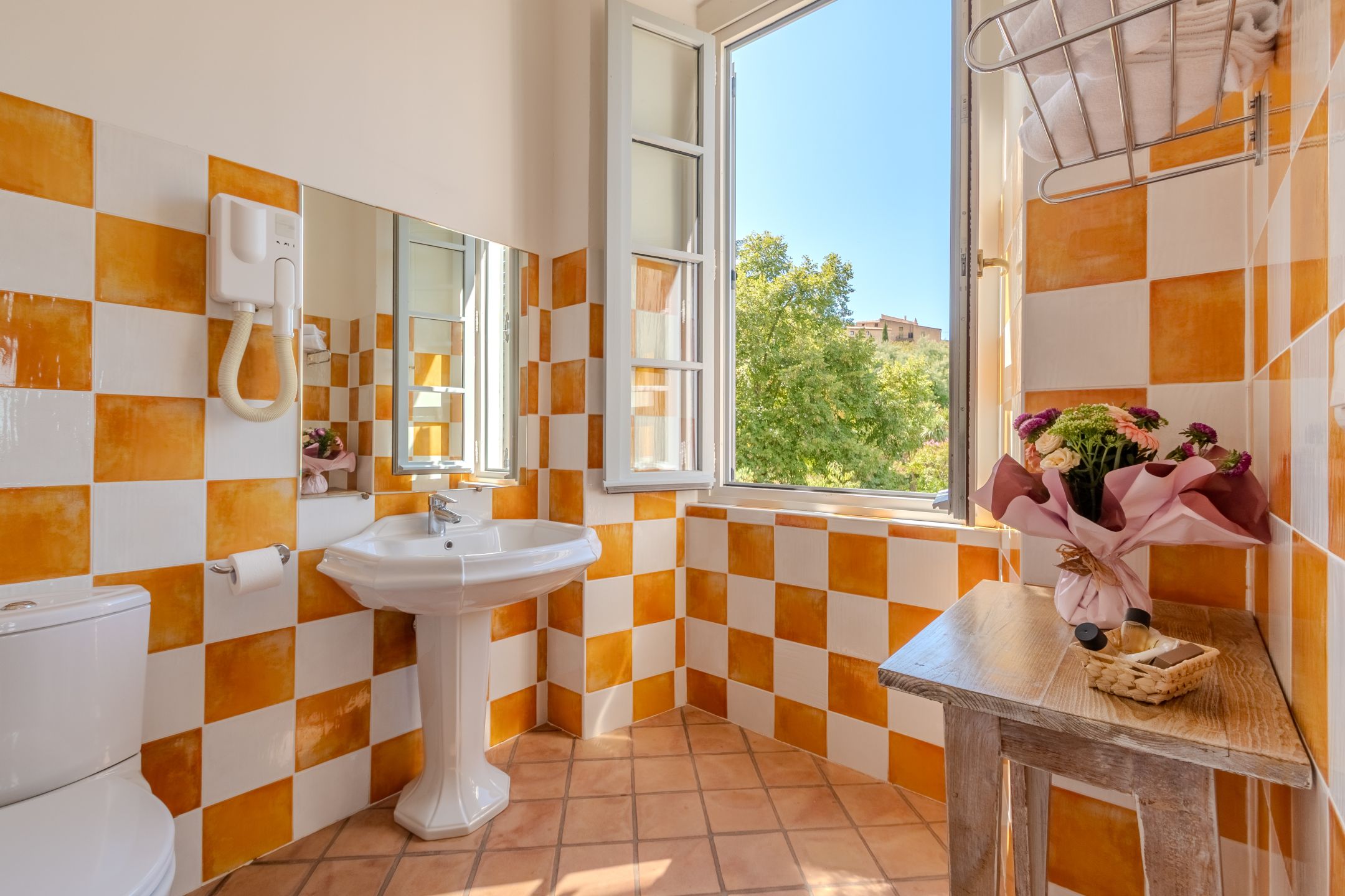 Chaque chambre dispose d’une salle de bain privative avec baignoire ou douche, peignoirs, chaussons, serviettes piscine, nécessaire de toilette, sèche-cheveux et prise rasoir, TV avec chaines internationales. A la demande, vous pourrez bénéficier d'un nécessaire à chaussure, rasoir, nécessaire à couture et d'une brosse à dent. Une attention particulière sera réservée à votre chien ou votre chat.